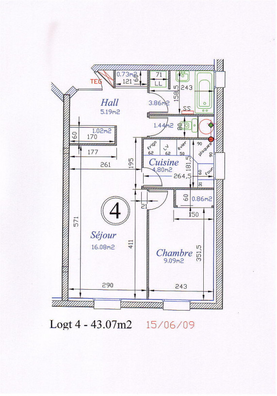 CHARGES : 30€ (entretien des espaces verts, entretien des parties communes, électricité des parties communes, sorties des poubelles)