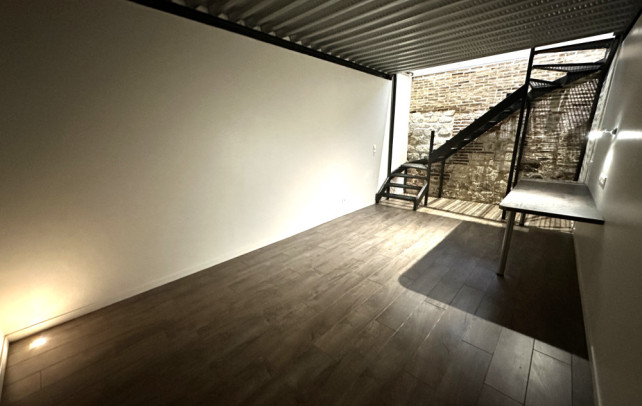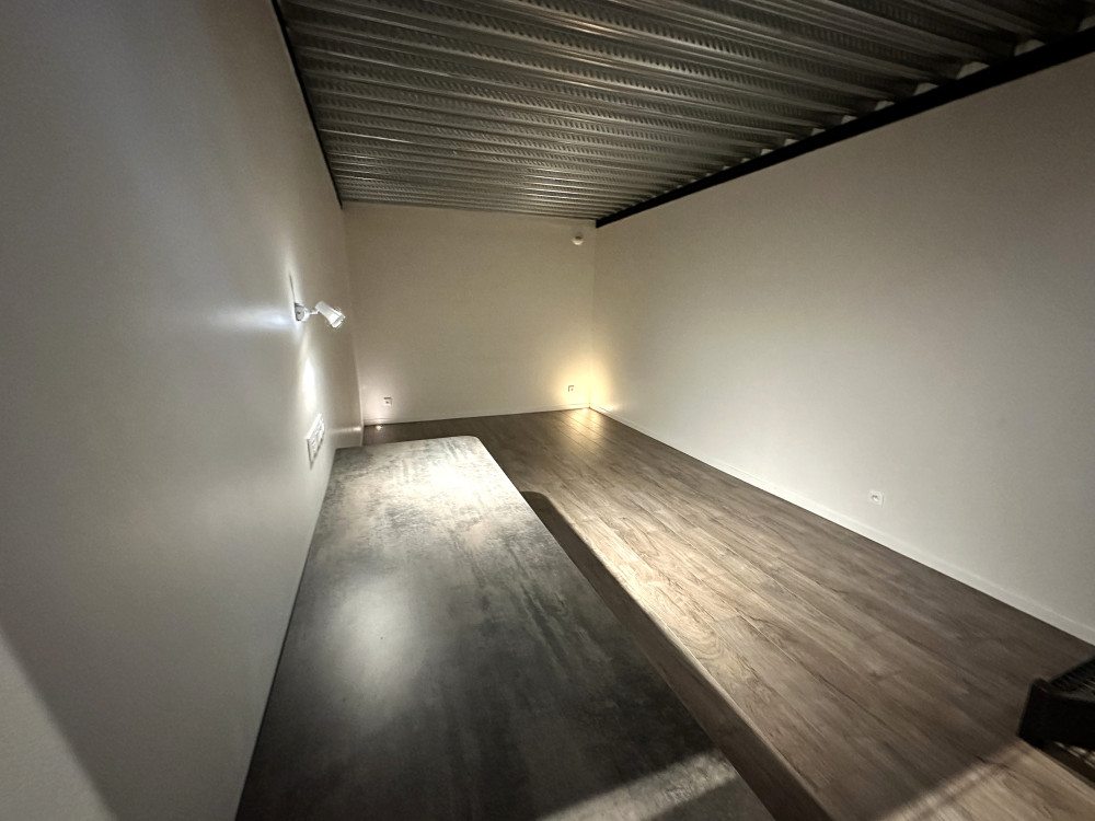 Au niveau 0: une entrée avec placard, une pièce principale avec espace kitchenette ouvert équipé d'un réfrigérateur, de plaques de cuisson, d'une hotte aspirante et d'un micro ondes, branchement pour lave-linge, une salle de bains avec baignoire, lavabo, WC et sèche serviettes.